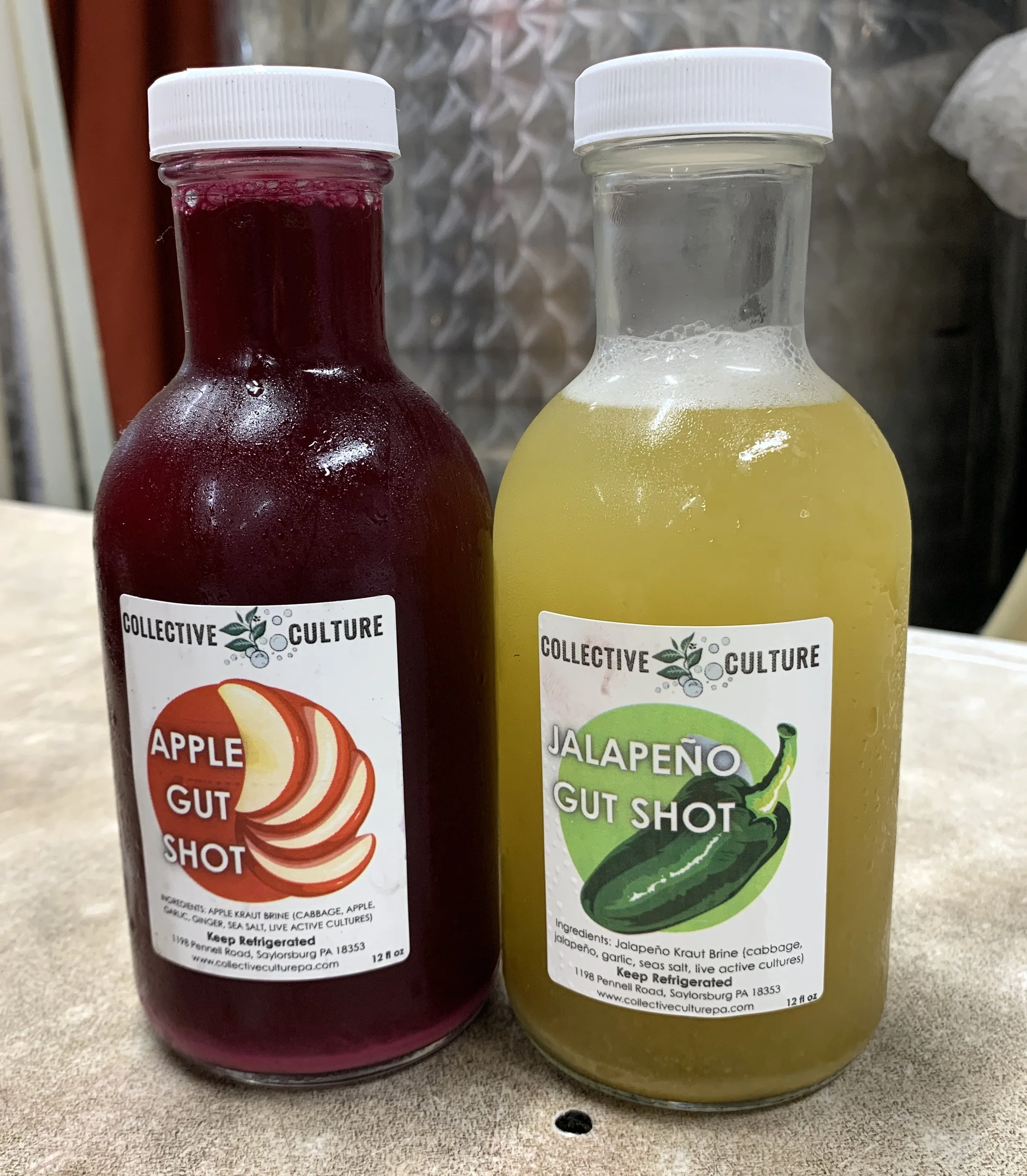 Kombucha is a lightly sparkling beverage made by fermenting sweetened tea. This natural fermentation creates a probiotic-rich drink that supports digestion and gut health. Each batch of Collective Culture kombucha is brewed using traditional methods, then blended with locally sourced herbs, botanicals, and fruits. The fermentation process reduces sugar, resulting in a refreshing, flavorful, and nourishing drink.